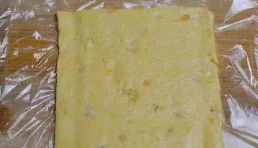 3,把紅薯泥和面團揉合在一起成光滑面團,放入冰箱冷凍15分鐘左右,面團有硬度即可,冷凍時長看自己冰箱的溫度!