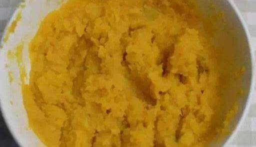 1,紅薯去皮切粒,加入15g水放蒸鍋,蒸熟後壓爛,放一旁備用