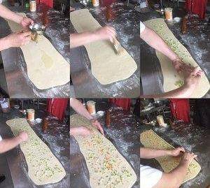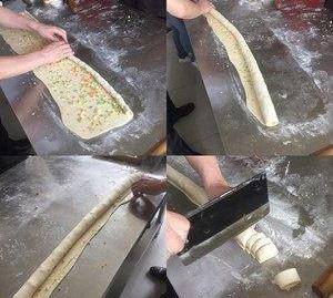 卷好後,把雜邊去掉,切一樣大小的面團