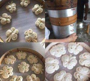 兩邊放好,筷子夾住三分之二處。成蝴蝶狀。 上籠醒發。