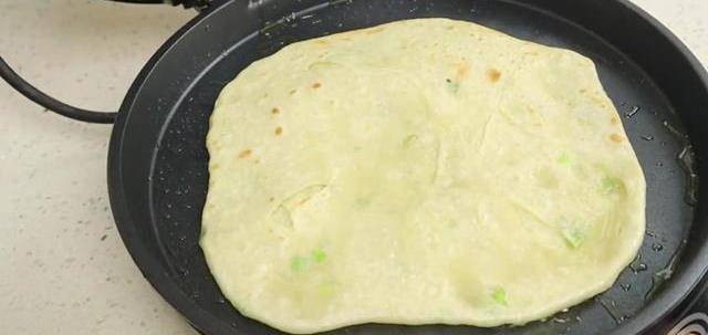 把小三角形折在一起,最後用大的三角形包起來。電餅鐺上下蓋都刷上油,放入餅皮,蓋上蓋子烙兩分鐘,翻面再烙一分鐘。最後烙至兩面金黃就可以出鍋瞭,顏色漂亮,香氣撲鼻,已經忍不住想吃瞭。蔥香味十足的千層餅,層次豐富更柔軟,一頓吃五張都不膩。