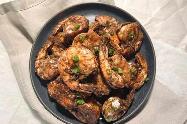 開蓋後加入米酒和白胡椒粉、黑胡椒粉大火翻炒至沒有水分,直至醬汁收幹掛在蝦殼上即可出鍋食用。