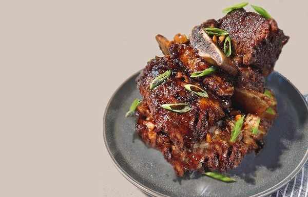 牛排骨、蒜、洋蔥、米醋、水、香葉、醬油、黑胡椒粉、椰子棕糖