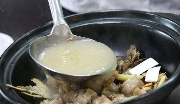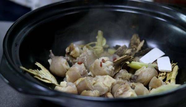 2、將羊蹄、鮮瑪卡、當歸,玉竹,枸杞,黨參等一起放進砂鍋,倒入濃湯,可選用羊骨熬制的高湯