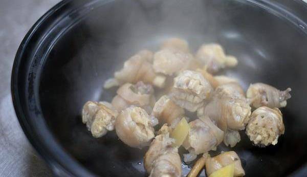 1、先用火把黑山羊蹄上的毛燒幹凈後用水沖洗,砍成塊(一根羊蹄約一分為四),將羊蹄放進鍋灼燙到沒有血水為止。