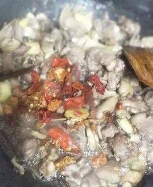 用大火燒開水在鍋中,放入跺好的鴨塊煮2到3分鐘,先用料酒去腥醃制好之後放進鍋中去掉多餘的油脂,之後撈出來控幹水放在盆子裡備用。準備熱鍋燒油,把熱好的鍋中倒入少量食用油,倒入之前焯好水的鴨肉大火爆炒,水幹後用小火慢慢翻動鍋鏟攪拌均勻,一直煸炒至鴨肉的邊微微變成黃色。在鍋中倒出煸炒出的多餘鴨油,放入準備好的幹辣椒、薑、八角、桂皮和鴨肉一起炒香,炒出香味。
