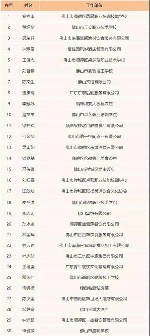 近日,佛山市人力資源和社會保障局公佈了佛山市粵菜名廚認定結果。經推薦申報、專家組綜合評審、社會公示等流程,羅福南、黃熾華等30人被認定為佛山市粵菜名廚。30比特佛山市粵菜名廚將一次性獲得3萬元薪水外津貼,並且獲頒榮譽證書。
