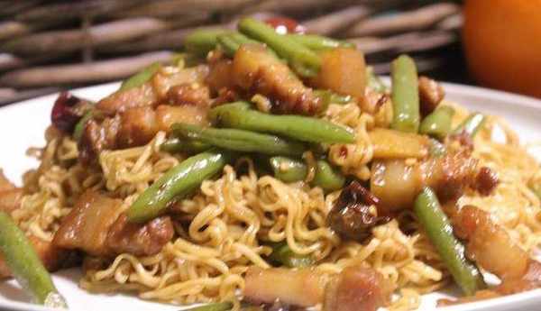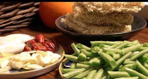 方便面3包五花肉300克豆角200克幹辣椒10克八角2顆桂皮2克香葉2片大蔥10克薑片10克蒜瓣5克用料(輔料)