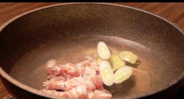 放入冷水鍋中,加入蔥薑片,一勺料酒,開大火燒開,去除腥味和血水