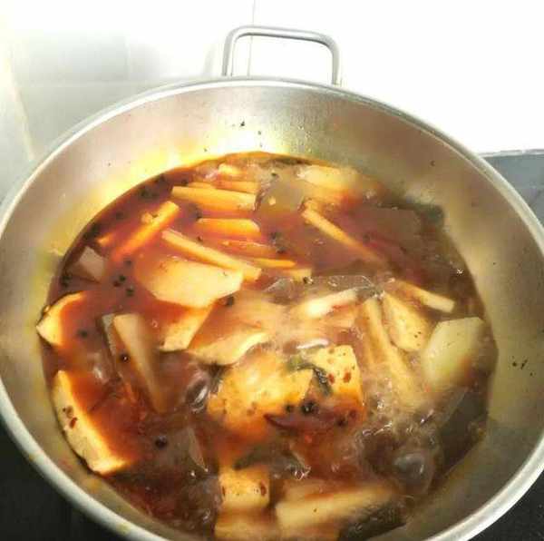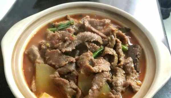 這道菜的牛肉片又嫩又爽口,有豆腐味又香,蘿卜有點甜,是一道好菜,平時傢裡人不多,這個鍋就夠瞭,人多瞭也可以當飯的菜。