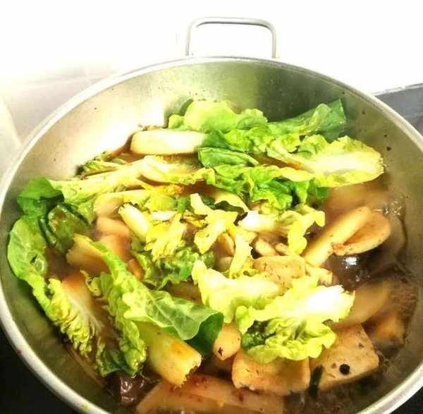 最後放木樁白菜煮,包白菜的話,可以先炒味道再煮,煮好後撈起放入沙鍋,如果砂鍋大的話,就可以直接放進砂鍋裡蒸。