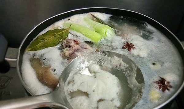 步驟6、大火煮沸後撇去浮沫,浮沫一定要撇幹凈。