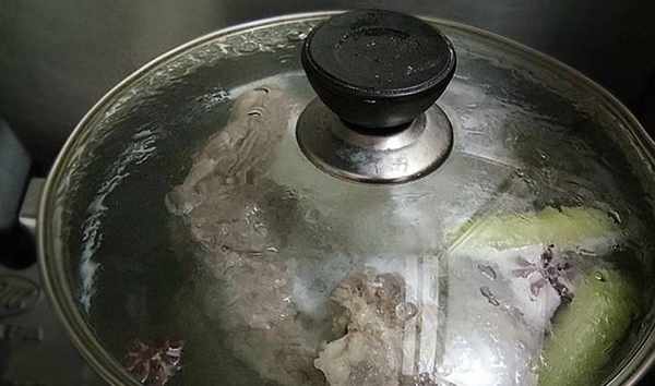 步驟7、撇凈浮沫後蓋上蓋子,改小火煮。