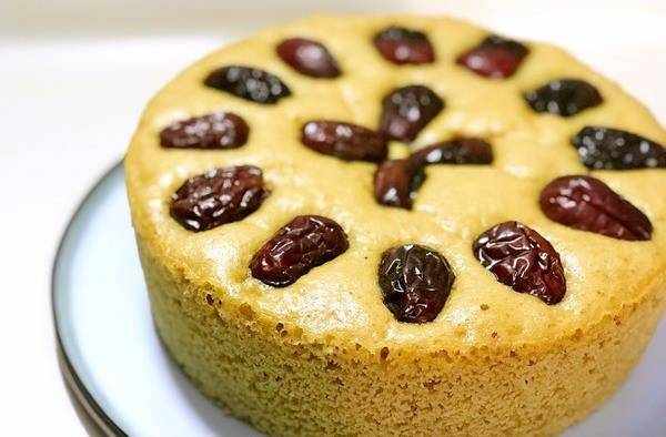5、等到面糊發酵好之後,有心的朋友可以在這個時候裝飾一下,比如上面放些棗幹,蔓越莓,葡萄幹,枸杞等等,然後冷水上鍋蒸,等水開瞭再蒸30分鐘。蒸完之後不要急著拿出來,關火在裡面悶5分鐘,然後再取出來就可以切開食用瞭。