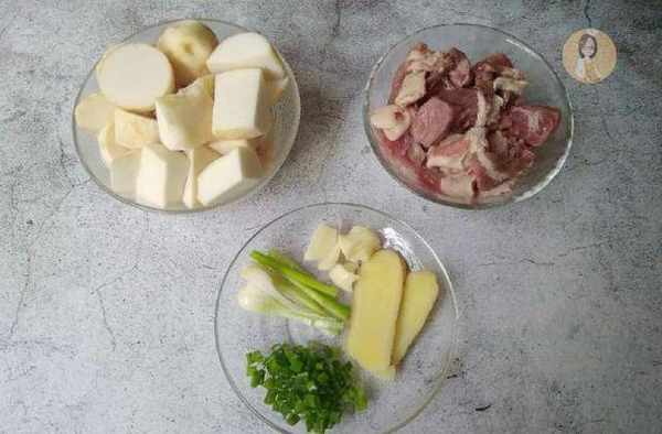 牛腩、芋艿、小蔥、生薑、蒜頭