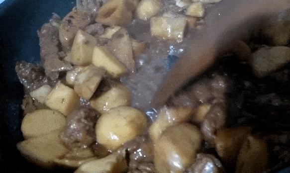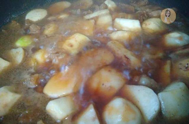 煮至芋艿可以輕松用筷子插過,翻炒片刻。
