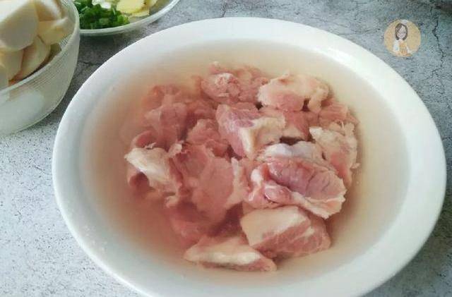 牛腩切塊入涼水浸泡去除血水。中間可換水幾次直至水變清。