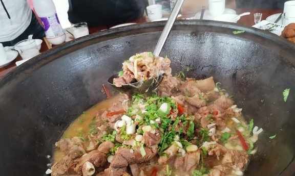 鐵鍋裏有很多種橫山羊肉,除了燉羊肉外,如羊腦、羊蹄、羊肉串等,可與美味一起食用。