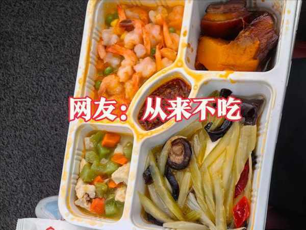 有網友評論調侃道:“從來不吃那玩意,高鐵盒飯太坑人瞭,肥肉就算瞭,關鍵是還沒幾塊,味道還不好吃。”