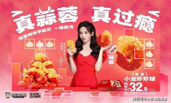2022年,周黑鴨聚焦年輕消費主力,挖掘消費者“吃蝦怕麻煩”的痛點,主打“單手吃蝦”,成功推出大單品——小龍蝦蝦球,並官宣楊超越為品牌代言人。這種新吃法,讓消費者在盡享舌尖好滋味的同時,也不耽誤暢玩手機的樂趣,完美貼合郊遊聚會、夜間劇場等休閑場景。
