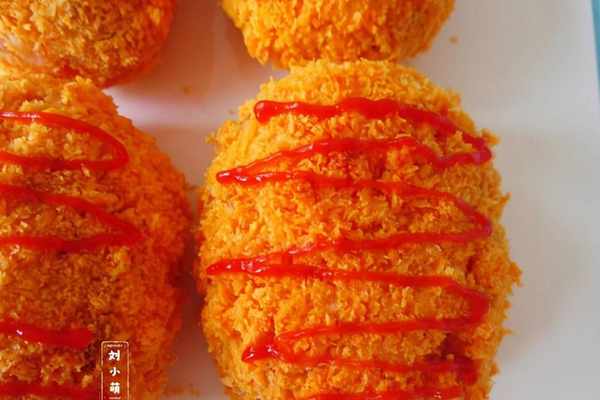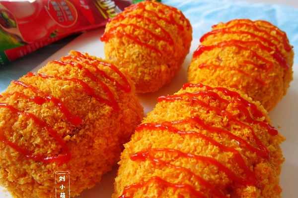 9、表面擠點番茄醬,開吃。
