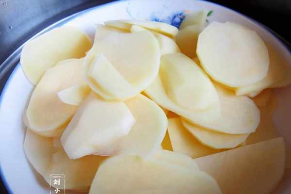 1、土豆洗幹凈去皮後切成片,切成其他形狀也可以,不過片更容易蒸熟。