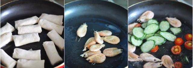 1.鍋裡多倒入些油,將春卷兩面煎成金黃色。
