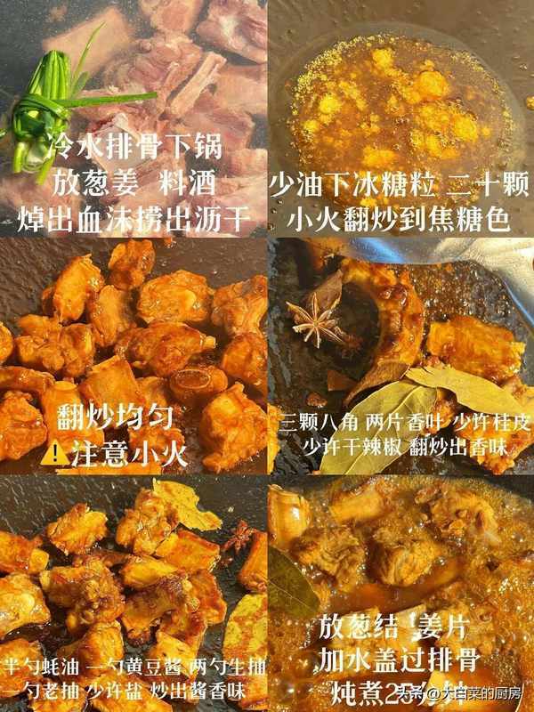 2:炒完糖色後將排骨下鍋翻炒上色,加入如下圖所示的香料炒香後調味