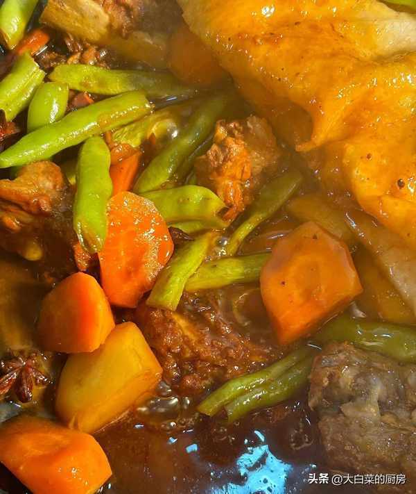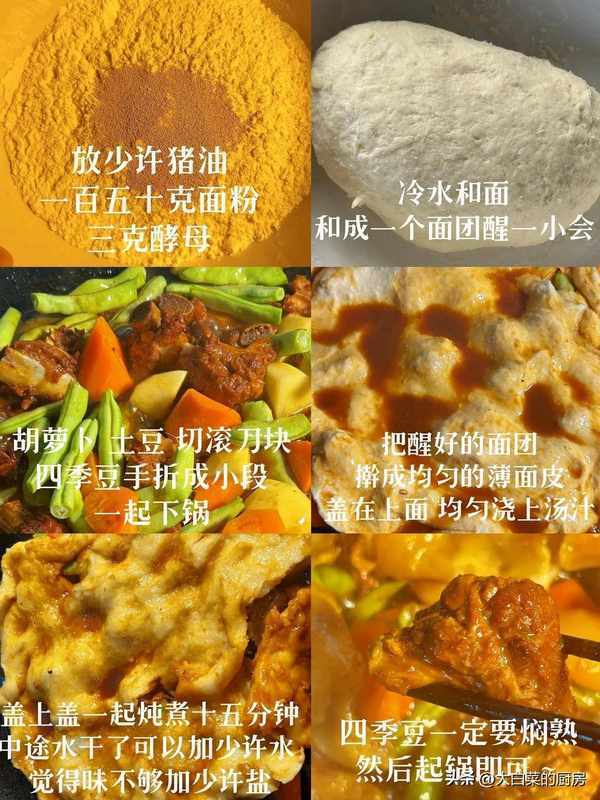 6:最後把醒好的面團搟成薄一點的面皮蓋在上面,澆上湯汁後蓋蓋小火燜煮1520分鐘即可分鐘即可出鍋!