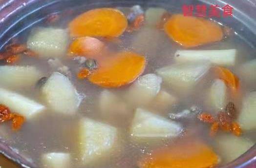 9、隨後再下紅蘿卜、淮山藥、雪梨再次煮20分鐘。