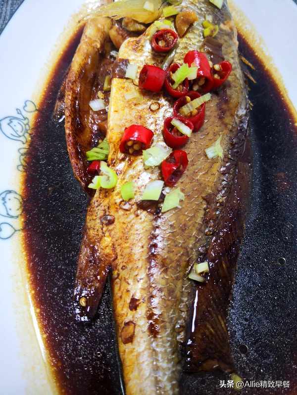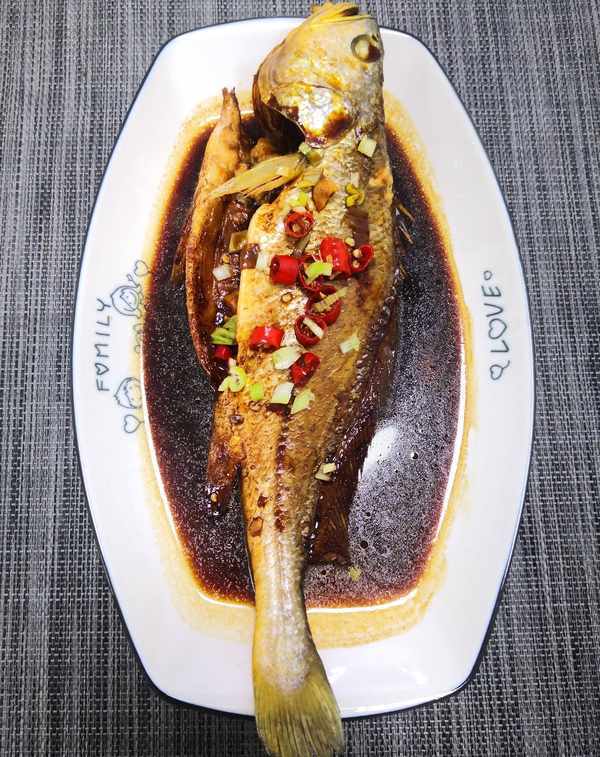 3.煮至黃魚快熟時加適量鹽繼續煮幾分鐘即可出鍋,煮黃魚的時間要根據黃魚的大小調整,因其肉質細嫩,不宜煮太久,避免肉變老,影響口感。