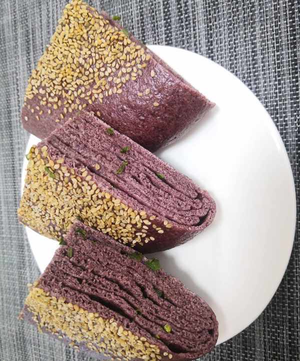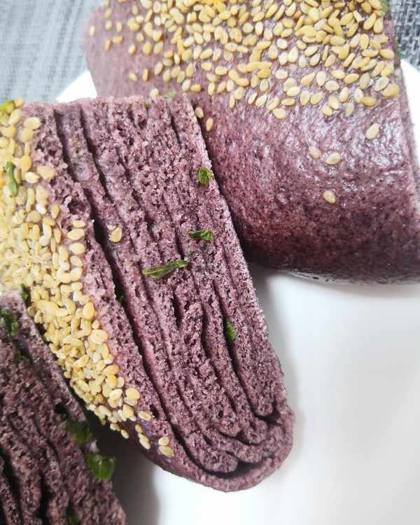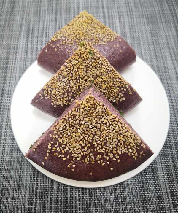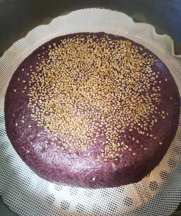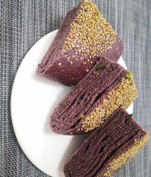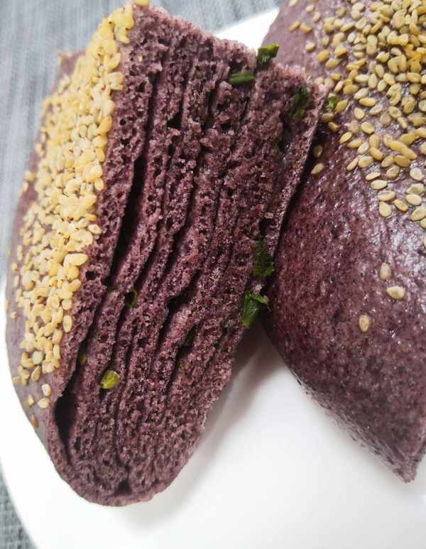 黑米、中筋面粉、酵母、溫水、香蔥、熟白芝麻
