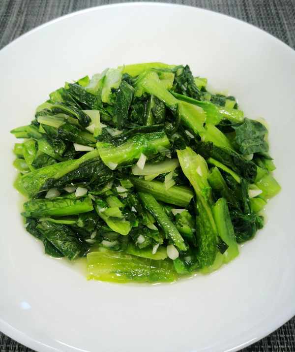 鍋裡倒入少許油,倒入蔥、蒜炒出香後倒入油麥菜,加少許鹽翻炒至斷生即可。