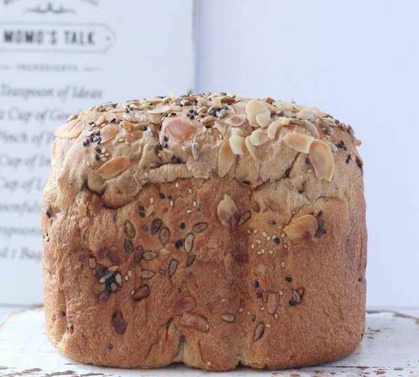 原料:面團材料、高筋面粉、耐高糖幹酵母、黑糖、鹽、水、黃油、葡萄幹、核桃仁、表面裝飾、杏仁片、葵花籽仁、黑芝麻、白芝麻。