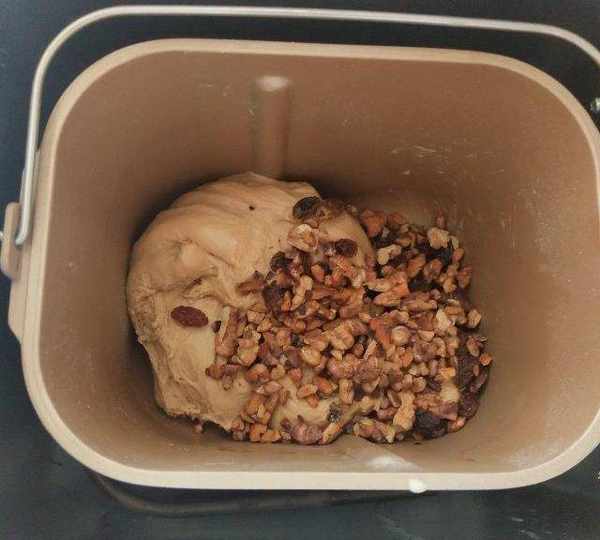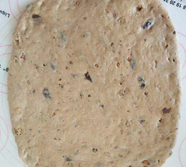 第5步、加入泡軟的去除水份的葡萄幹和核桃仁揉勻即可。