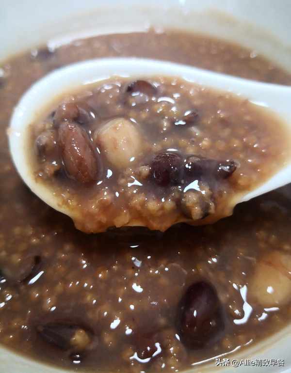 由多種食材組合而成的八寶粥,食物多樣,營養全面,早起喝一杯,暖胃暖全身。