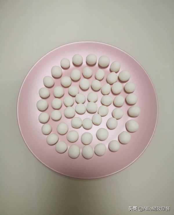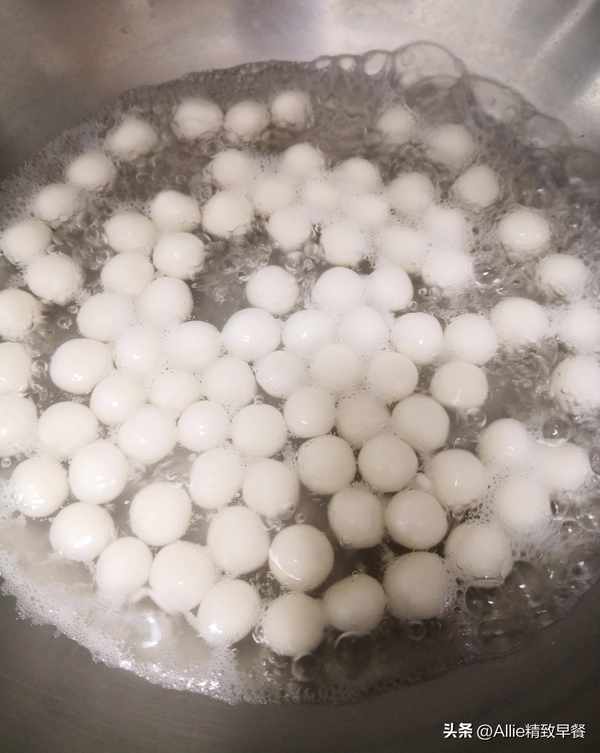 水開後倒入糯米小丸子,煮至漂起無硬心撈出控水。