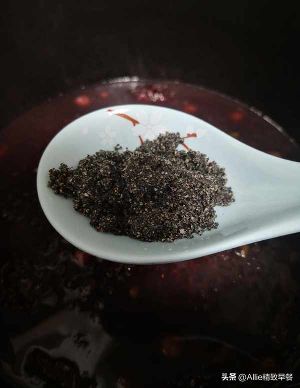加入黑芝麻粉,黑芝麻粉按照人均約5克。