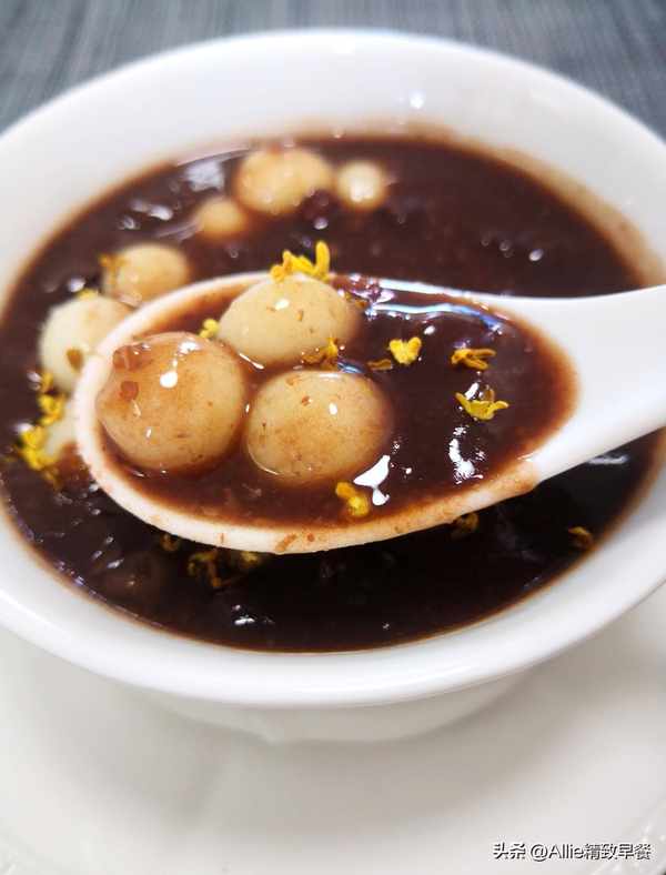 有桂花的的清香,有紅豆的沙沙口感,還有軟糯勁道又Q糖的自制小丸子,口感豐富,營養豐富。