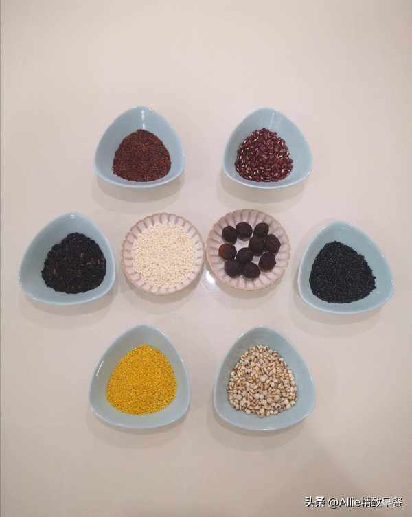 糯米、黑米、黑豆、花生、紅棗、黑芝麻、幹桂花(不加也可以)