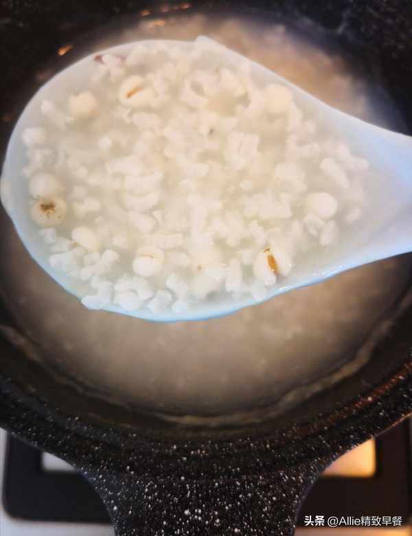 煮至糯米、薏仁米軟爛開花。
