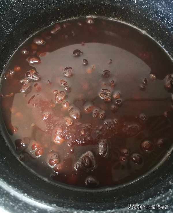 鍋裡加適量水,燒開後倒入泡好的紅豆,再次煮開後轉中小火。