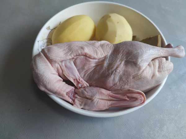 1.宰幹凈的白條鴨用清水浸泡去血水,撈出清洗幹凈,土豆去皮後清洗幹凈。