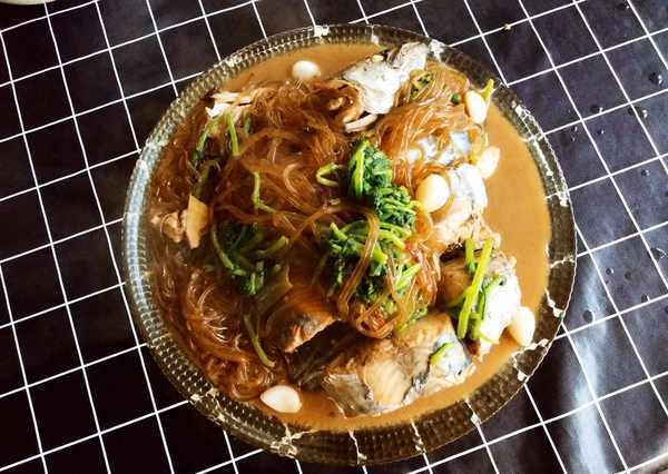 1.鮁魚直接切成厚一點的段,然後放入清水中捅去內臟,去除鮁魚的魚鰓,把鮁魚的瘀血洗凈後撈出,紅薯粉條用清水泡發備用。