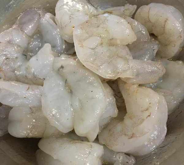 第1步、蝦仁提前解凍,清洗幹凈後背上劃一刀,加入適量鹽,胡椒粉,食用油醃制十分鐘。