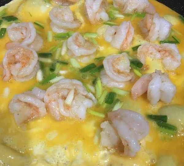 原料:蝦仁、雞蛋、香蔥、豬油、鹽、胡椒粉、黃酒。