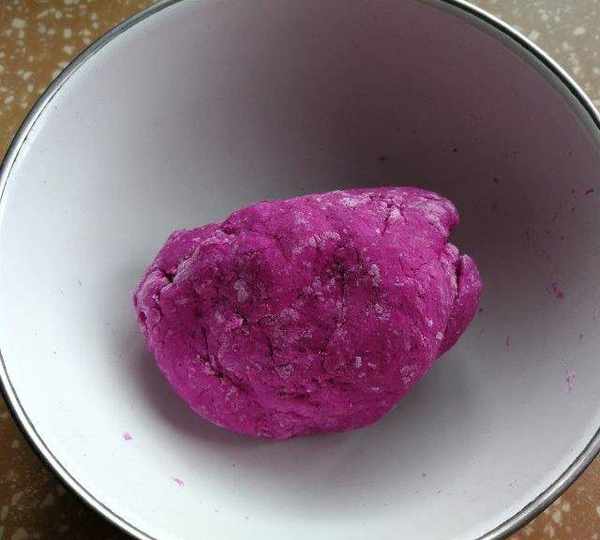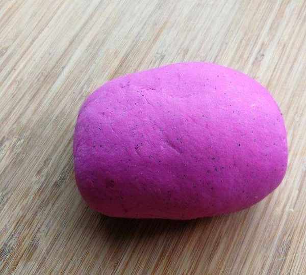 第2步、用火龍果汁和面,和成偏硬的面團餳發10分鐘後再揉。