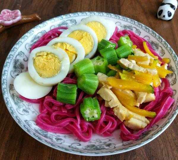 雞蛋秋葵拌火龍果面條By清水淡竹