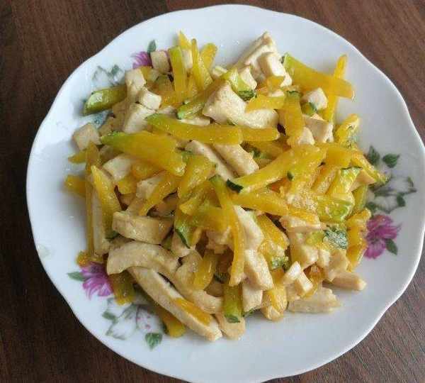 原料:雞蛋、秋葵、嫩南瓜、豆腐、火龍果、面粉、油、鹽、生抽。