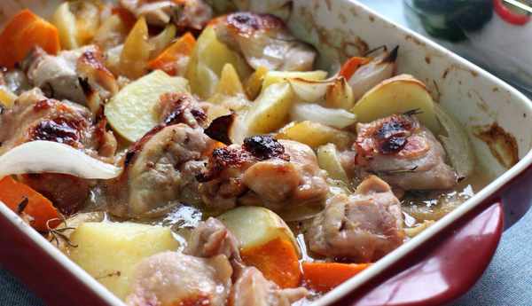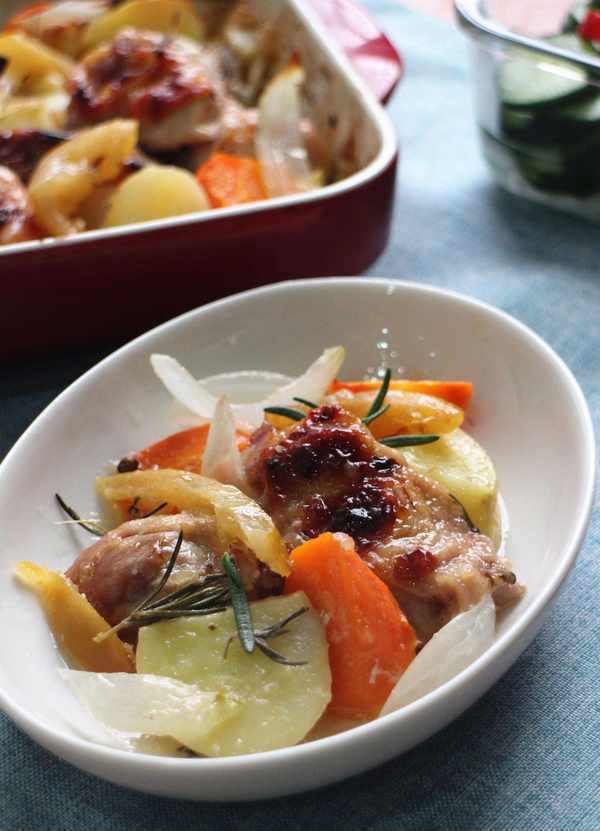 沒想到孩子愛極瞭!雞肉又嫩又清甜,紅蘿卜和馬鈴薯吸收瞭烤雞的汁液,也松軟好吃。